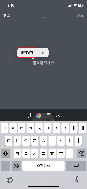 - 따라서, 텍스트 (T) 버튼 클릭 -> 꾹 눌러서 붙여넣기를 해준다.