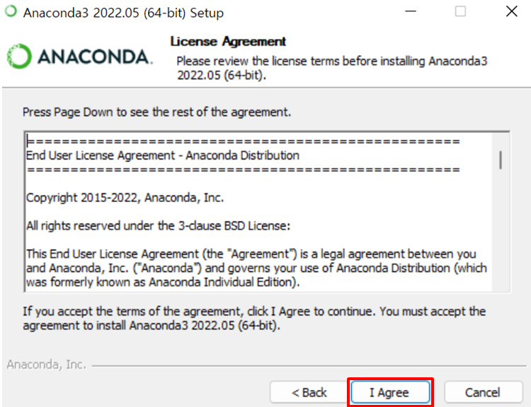 I Agree 버튼을 누르고, 다음 단계로 넘어갑니다.