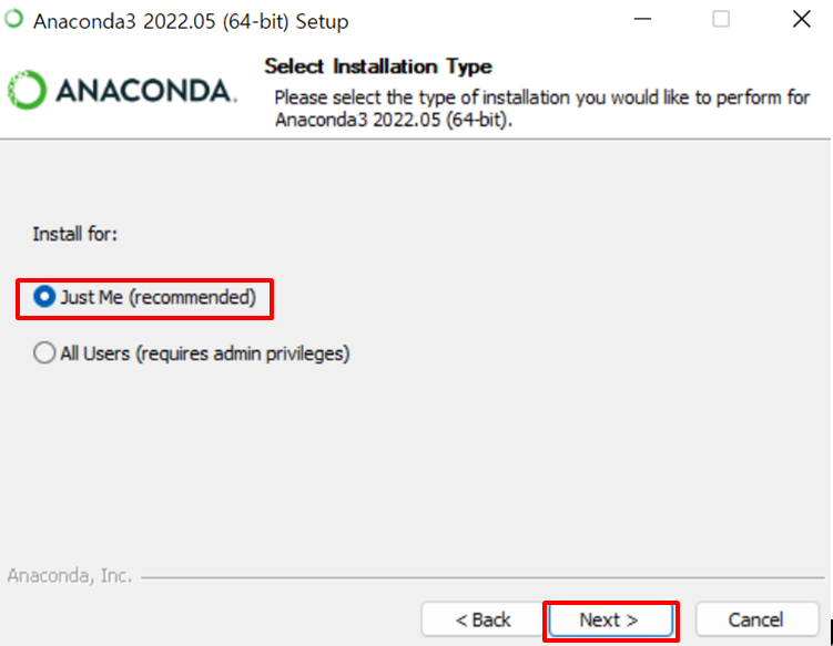 필자는 현재 사용중인 User에 설치하는 쪽으로 진행하였습니다. (Just Me)
